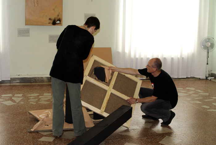 По признанию Сергея, уничтожение холстов в процессе подготовки экспозиции было для него самым сильным моральным испытанием. «Я сам делал подрамник, грунтовал холсты, красил их. А потом сам же их уничтожал. Для меня это был чудовищный акт личного переживания потери. Это должен почувствовать и зритель, пришедший на выставку: то, что должно было стать целыми мирами, теперь не будет ничем».