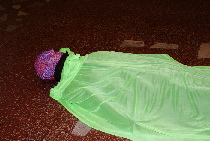 Другой автор проекта, художник и искусствовед Галина Гурьянова, пояснила выбор тематики для своих работ: «Весь наш проект базируется на сочетании условностей. Не обязательно изображать войну слишком буквально. Многие авторы именно так и передавали ее – через ассоциации. Лежащая в центре фигура человека также условна. Может быть, этот персонаж просто спит или засмотрелся на звезды, а может быть действительно поражен смертельными газами».