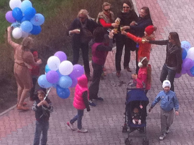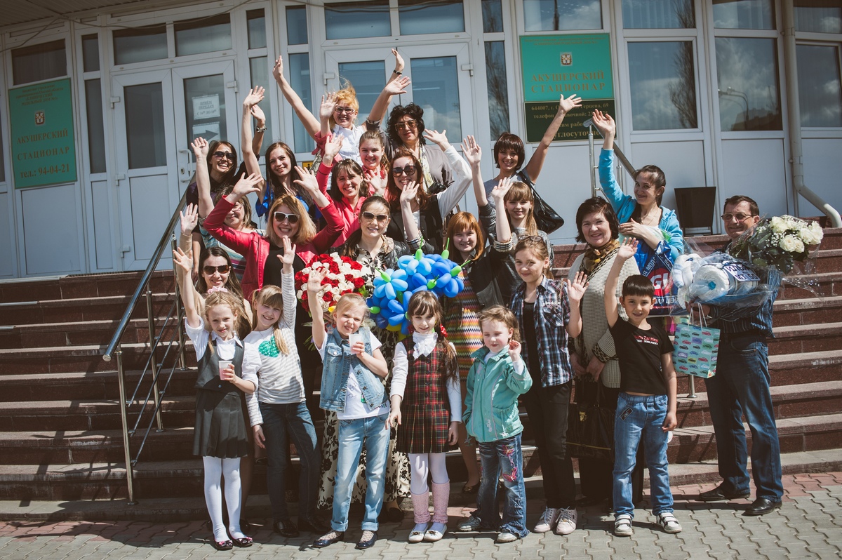 «Очень приятно было, когда меня навещали в роддоме друзья. Из окон своей палаты я наблюдала, как ко мне приехали со своими детьми Света Малаева, Элла Портнягина (даже собаку взяла), Марина Метель, Оля Проскурня, Наташа Кислицкая и Наташа Ремизович. Они растянули на заборе плакат с поздравлением, который потом радовал меня каждый день. И конечно, было шампанское, но детское. А вчера на выписку пришли и мои ученики с родителями и целый час ждали у роддома, когда нас выпишут. Приехали мои родители из Казахстана и родители мужа, сестра. Было очень душевно», - рассказывает Татьяна.