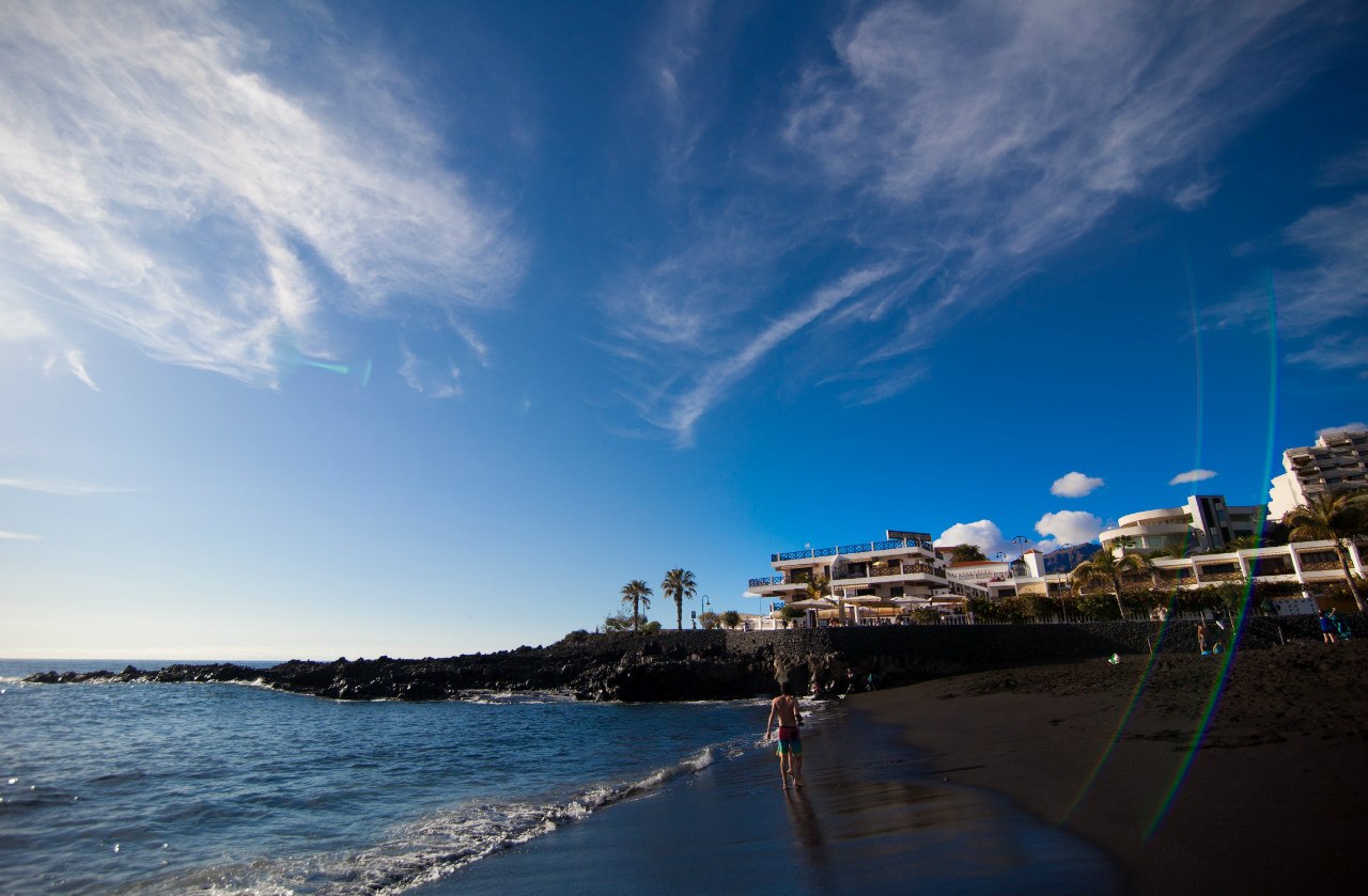 Следующей точкой был остров Тенерифе. Узнала я о нем совершенно случайно, просто когда искала вылеты из Барселоны. Тенерифе входит в состав Канарских островов и находится поблизости с Марокко, поэтому там тепло и вполне можно купаться даже в апреле. Пляжи заполнены туристами. Тенерифе — третий по величине остров вулканического происхождения, самая главная достопримечательность острова — вулкан Тейде, расположенный в центре острова.
