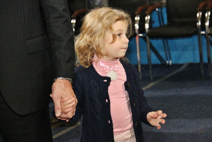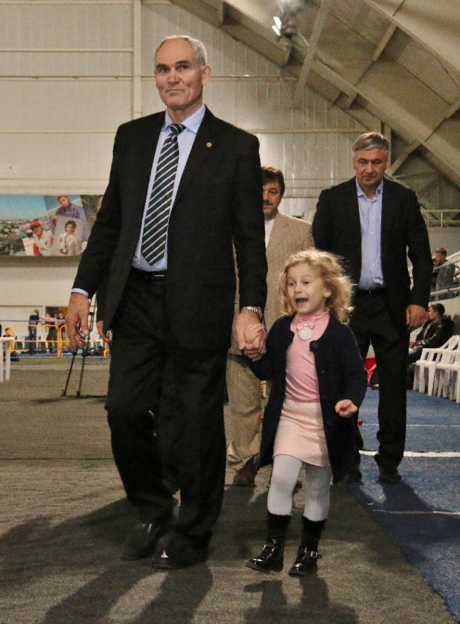 Александр Михайлович награждал спортсменов тоже вместе с дочкой. Золотоволосая красавица в розовой кофточке с бантиком не отходила от папы ни на шаг, держала его за руку и непосредственно улыбалась.