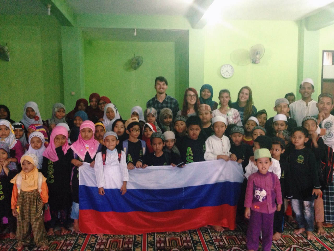 Было интересно буквально все! А когда я сказала, что Россия - самая большая страна в мире, они захлопали в ладоши. А при виде сушек, блинов и борща - даже вставали с мест, чтобы лучше рассмотреть. Всего в первом детском доме, где мы побывали, 120 детишек, поэтому для того, чтобы провести вводное занятие и знакомство сразу со всеми, пришлось искать подходящее большое помещение. А так как страна мусульманская, то самым просторным местом оказалась мечеть. И это было довольно странно - проводить урок в церкви, говоря при этом в микрофон, чтобы всем было слышно. Но это было невероятное занятие: дети очень заряжают свой энергетикой, любопытством и активностью.