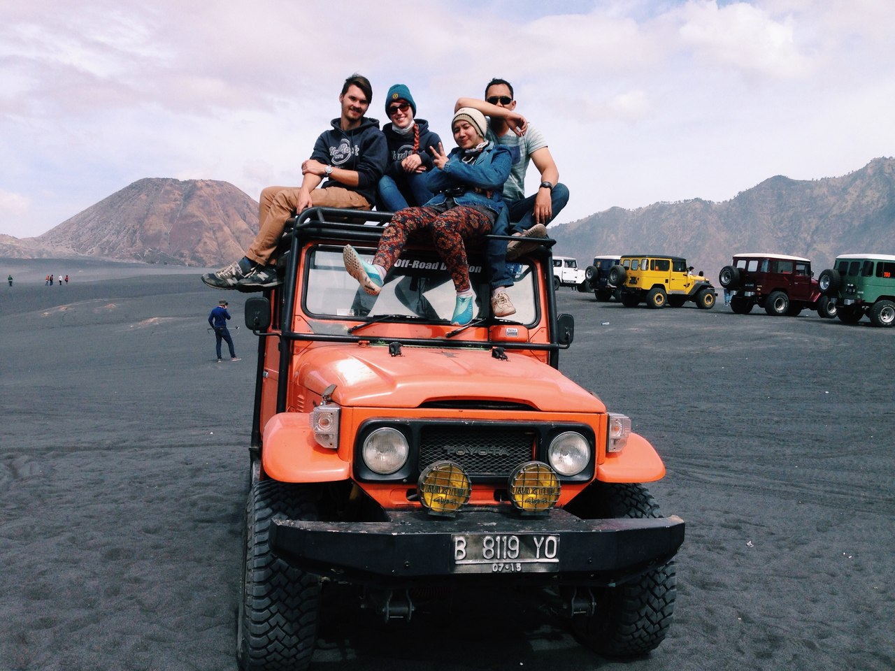 Будучи еще в Омске, я точно знала одно место, в которое я хотела поехать больше всего, - это вулкан Бромо. Никогда раньше я не видела настоящий вулкан и тем более его кратер, а в массиве Тенгер неподалеку от Маланга, мы могли наблюдать все это сразу. И вот на последней неделе в Маланге сбылась мечта идиота: мы вместе с Ромиными хостами отправились встречать рассвет у вулканов. Да-да, он там не один. Вдали виднеется вулкан Семеру, изредка выпускающий клубы дыма. В полночь мы сели в джип и отправились навстречу приключениям, надев на себя всю теплую одежду, которую привезли с собой: ночью в горах холодно даже в Индонезии. А приехав на место, я купила еще и крутецкую самовязанную шапку на память.