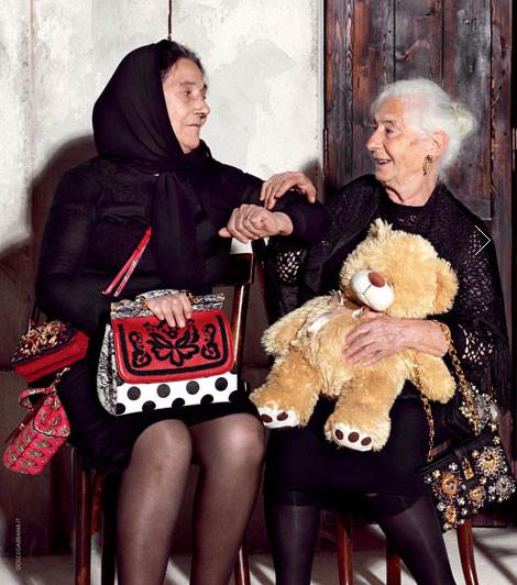Именитые дизайнеры сами выступили организаторами съемки - Доменико Дольче взял в руки фотоаппарат, а Стефано Габбана стал арт-директором кампании. Для демонстрации аксессуаров модный дуэт пригласил пожилых испанок. Сумки с пестрой барочной вышивкой, золотые диадемы с крупными алыми кристаллами, гипюровые кардиганы и массивные золотые серьги выгодно смотрятся на лаконичных черных платьях старушек.