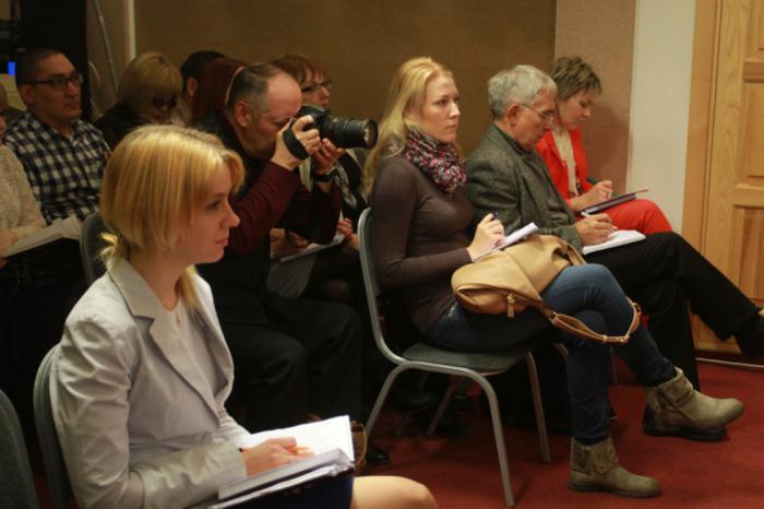 Глава культведомства сначала с легким недоумением отреагировал на инициативу подчиненной, а потом махнул рукой. Журналисты бодро отвечали «есть», после того как г-жа Боровская называла их имена.