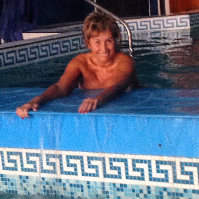 Не обошлось и без фотографии в стиле «ню». Лариса не постеснялась нырнуть в бассейн без купальника.