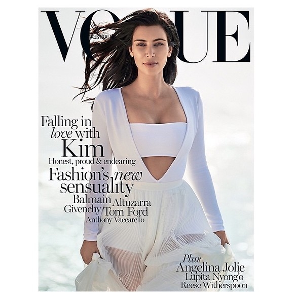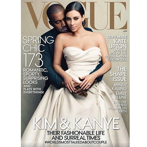 Впервые скандальная звезда появилась на обложке модного журнала вместе со своим мужем Канье Уэстом. Глянец украсила фотография из свадебной фотосессии пары. Номер был раскуплен за несколько часов.