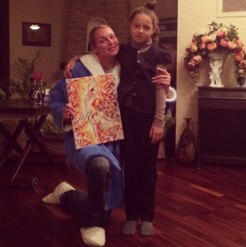 Волочковой исполнилось 38 лет. Первой артистку поздравила ее 9-летняя дочь Ариадна. Девочка сделала подарок своими руками, она разрисовала маслом картину, на которой изображена балерина. В своем микроблоге Анастасия опубликовала снимок, на котором продемонстрировала презент от Ариадны.