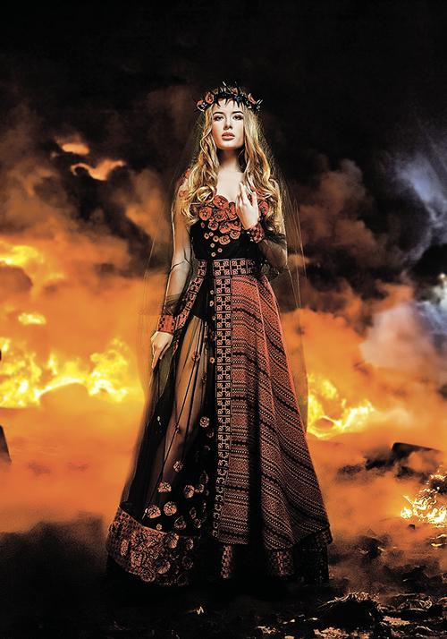 «Невеста войны», говорите, скорбящая о погибшем женихе девушка? Это с такой-то голой ногой она скорбит? В эротичном красно-черном наряде, который любого мужика с полоборота заведет? По замыслу модельера, костюм символизирует все, что пережил украинский народ за последний год. На мой же обывательский взгляд, этот костюм символизирует одно - доступность: «Я, мол, девушка скорбящая, но готова внимательно выслушать ваши предложения... Никто не смеет отнимать у Украины право на траур. Не скорбить вместе с Украиной нельзя. Мы все скорбим. И непозволительно превращать боль, страх, потери тысяч людей в фарс», - оценивает наряд Кривякина.