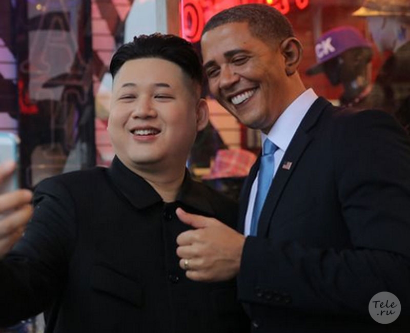 Актеры - 34-летний Реджи Браун и 36-летний Ховард, - загримированные под президента США Барака Обаму и лидера Северной Кореи Ким Чен Ына, прибыли к месту проведения церемонии и делали селфи со всеми желающими.