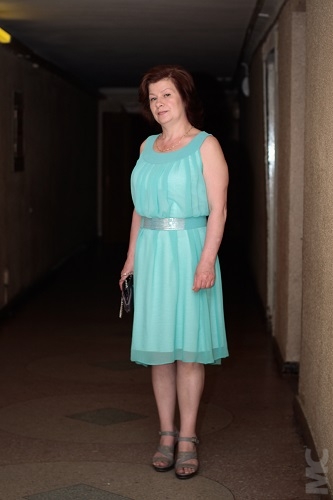 Елена Сургаева – заведующая сельхоз части в компании «Западно-сибирский Альянс» и мама «Мисс улыбки» Анастасии Сургаевой в шифоновом платье бирюзового цвета, которое очень освежает и придает образу романтичности.