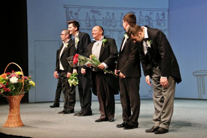 Там давали «Тестостерон» - модную комедию польского автора Анджея Сарамоновича. Честно говоря, увидеть приближающегося к своему 60-летнему юбилею г-на Кивича на спектакле, изобилующем произнесенными вслух сленговыми глаголами, определяющими суть занятий сексом между мужчиной и женщиной, было непривычно.