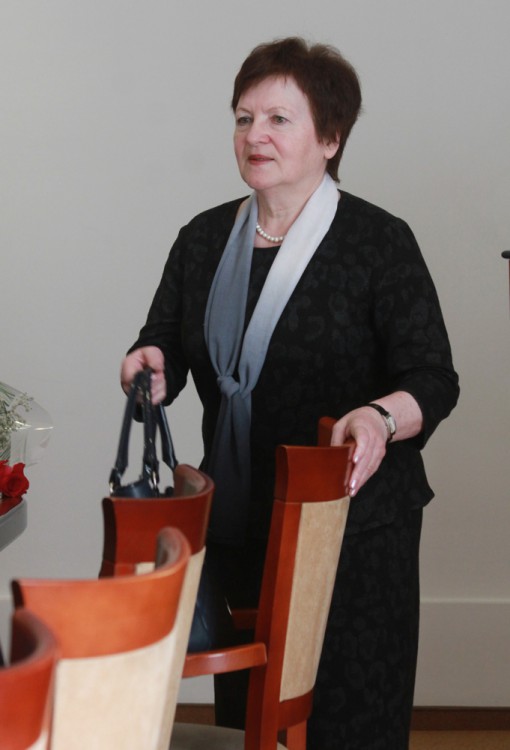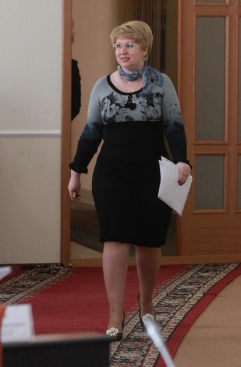Между тем директор департамента общественных отношений Радмила Мартынова решила надеть к ажурному серо-черному костюму скромные черные бусы.