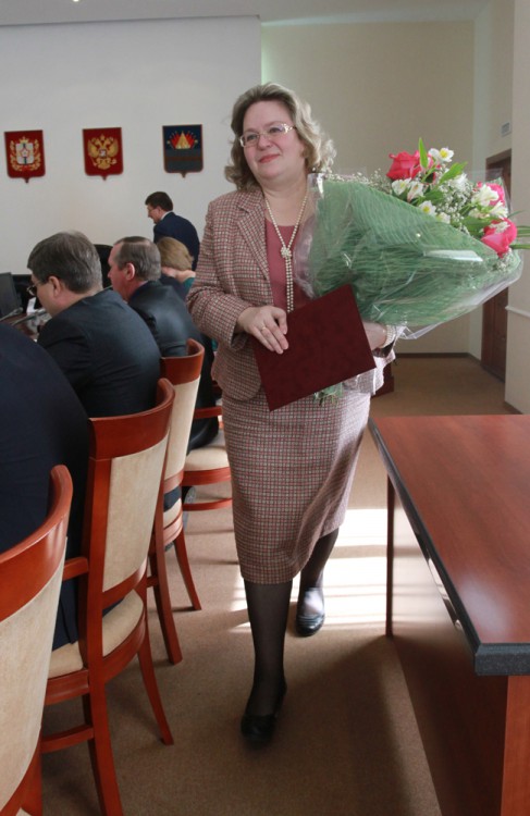 А глава департамента жилищной политики Светлана Шенфельд, принимавшая вчера поздравления с Днем рождения, к своему светлому костюму подобрала нитку жемчуга.