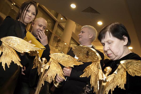 Режиссер Алексей Герман-младший с супругой Еленой Окопной (слева), продюсер Рушан Насибулин (в центре) и сценарист, супруга Алексея Германа-старшего Светлана Кармалита с главными призами