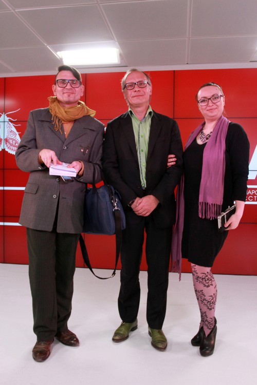 Руководитель PR-направления телеканала «Продвижения» Деменский лично захотел сделать фото с редактором отдела «Культура» журнала «Бизнес-курс» Василием Романовым и ведущей программы «Культурная суббота» старейшей омской телекомпании Марьяной Киселевой. Г-н Деменский убежден, что все омские СМИ работают в едином информационном поле, где нет места дрязгам и спорам, а есть желание продвигать все то хорошее, чем славится наш Омск. Например, моду.