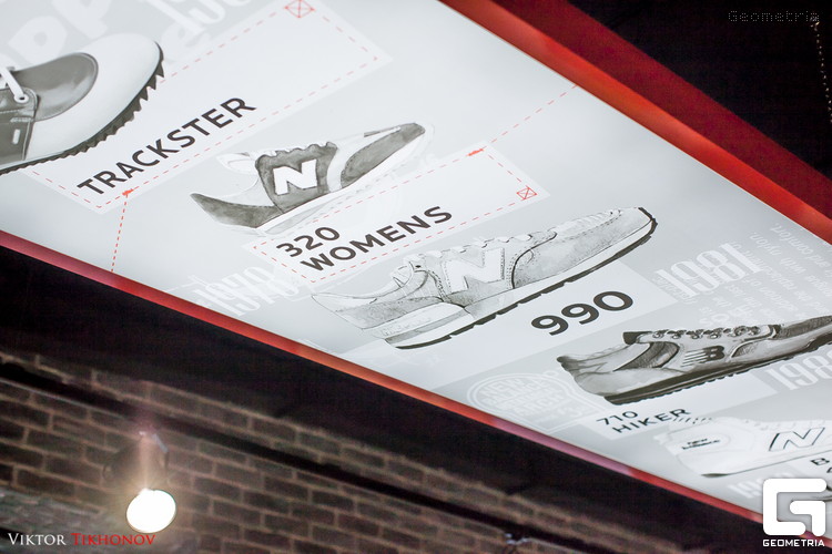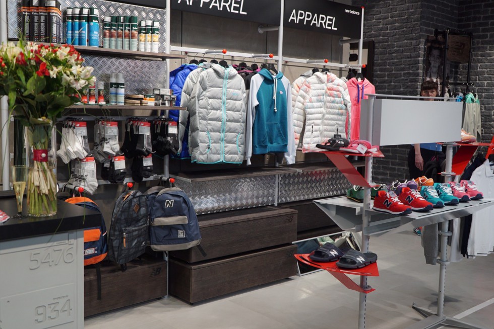 Интерьер нового магазина выполнен в стиле нью-йоркского офиса, воплощая дух NB. Это и интерьерная печать на фактурных стенах под кирпич, и трек на полу, подчеркивающий приверженность бренда к спорту.