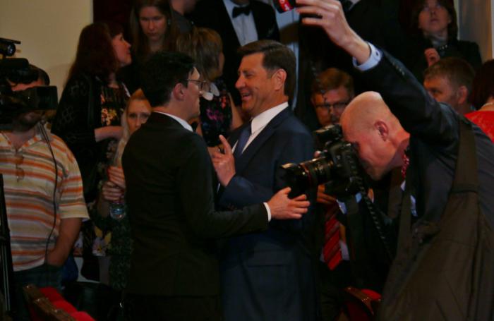 При этом на вопросы журналистов пришлось отвечать в скомканной форме, потому что время уже поджимало. После этого стартовала красная дорожка, возле Драмтеатра остановился автобус с московскими знаменитостями. И снова все происходило хаотично, неорганизованно и неторжественно.