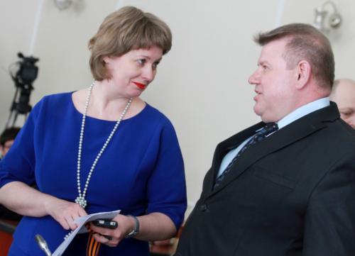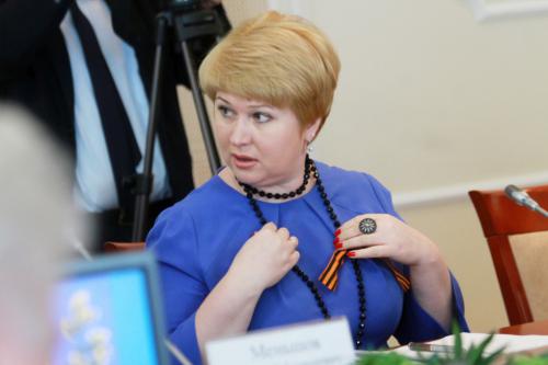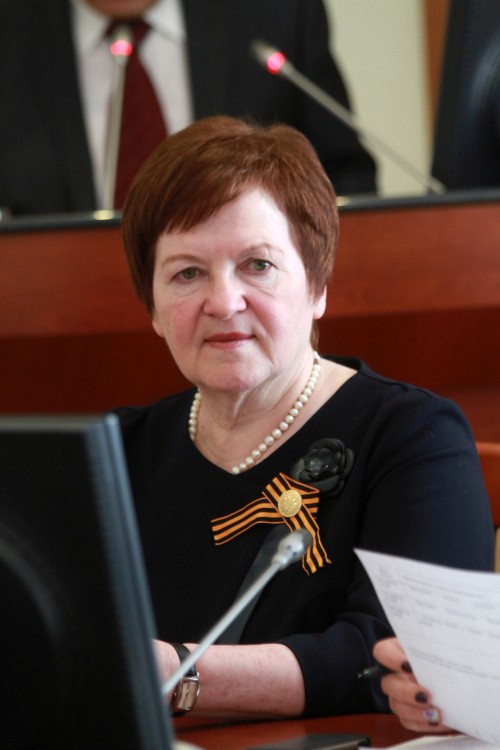 Несколько предусмотрительнее оказалась спикер Омского горсовета Галина Горст. Она наколола на ленточку брошку, отчего та заняла строго соответствующее место.