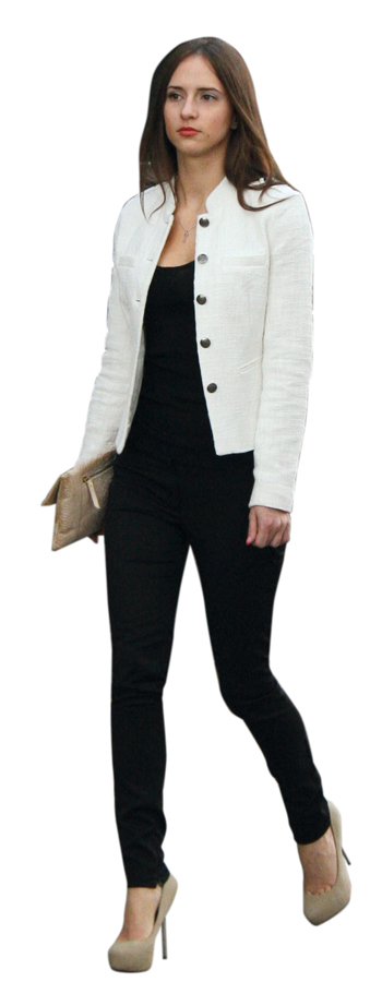- Красивые длинные ноги всегда хочется облачить в обтягивающие брюки и надеть высокий каблук. Ничего лишнего. Сочетание белого и черного всегда в моде.