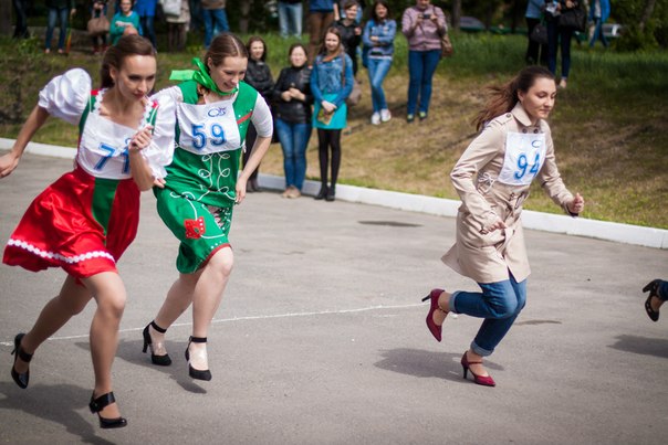 Сегодня возле здания второго корпуса ОмГУ прошел традиционный забег на шпильках. Пятнадцать студенток состязались в умении быстро передвигаться на каблуках в условиях «каменных джунглей».