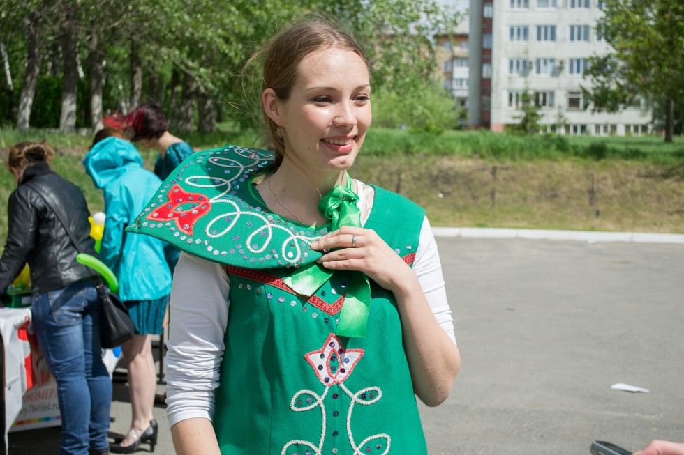 Участница конкурса Алевтина Шурупова подготовилась к забегу заранее: перечитала сказку Бажова «Хозяйка медной горы» и создала наряд «по мотивам» известного произведения. На старт она вышла в образе знаменитой уральской красавицы: в сарафане изумрудно-зеленого цвета и расшитом пайетками кокошнике. Чтобы пробежать на высоких каблуках дистанцию в тридцать метров, девушке пришлось приподнять полы своего роскошного длинного сарафана.