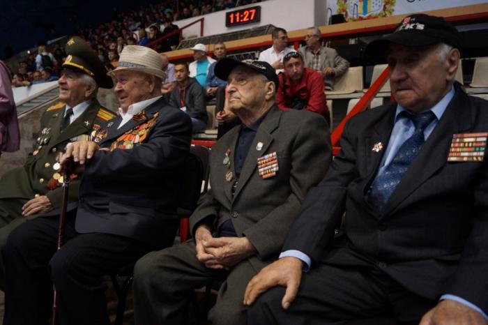 Также ветеранам вручили цветы. А боец Федор Емельяненко произнес трогательную речь.