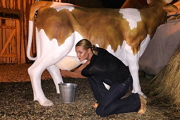 Настя решила примерить на себя профессию доярки и подоила башкирскую буренку. Правда, судя по фото, корова была ненастоящей.