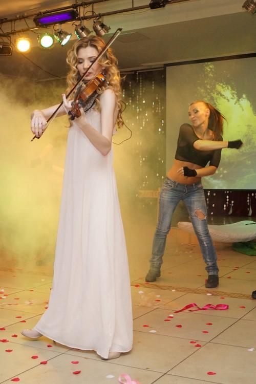 Номер начался с ритмичных танцев в кожаных куртках и джинсах а-ля «мотостайл». Пока подтанцовка была на разогреве публики, Дарья незаметно удалилась и предстала в белоснежном платье со скрипкой в руках. На смену музыке техно вступила скрипка, которая по мере развития действа стала наигрывать дуэтом с фоновой композицией. Кульминацией номера стал выезд жениха на красном байке «Хонда», который укатил невесту под изумленные лица гостей и оглушительный рев мотора.