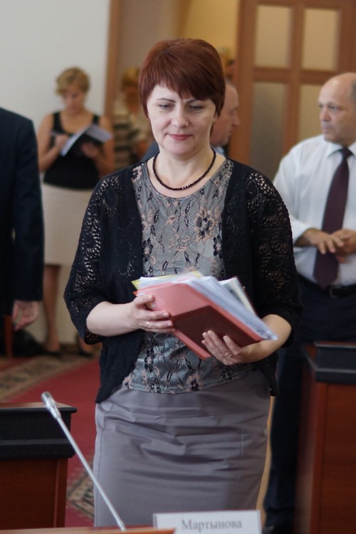 В свою очередь, директор департамента общественных отношений и социальной политики Радмила Мартынова оделась неброско.