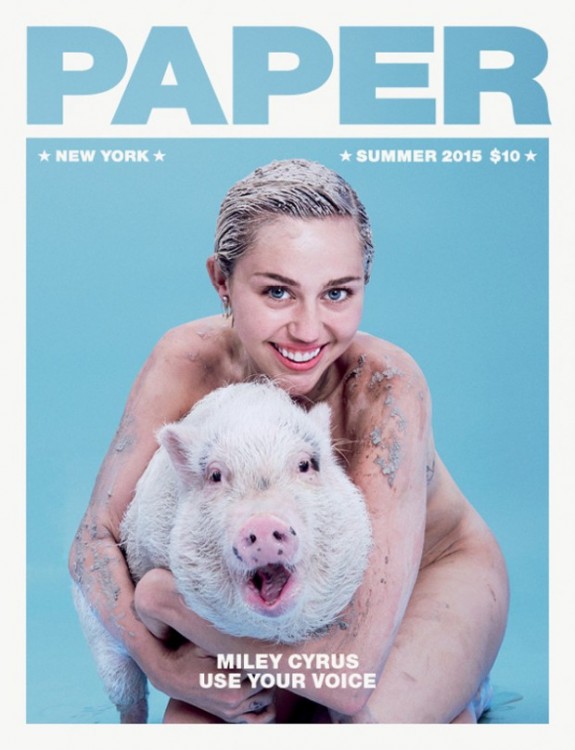 Однако очередная фотосессия для журнала Paper все же смогла внести разнообразие в «голое» поведение Сайрус. На съемке певица кривлялась перед камерой вместе со своим домашним питомцем - свиньей по имени Бубба.