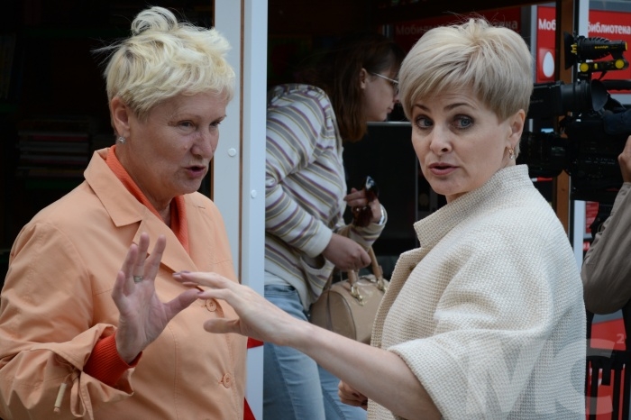 Однако многие «буквоеды» были завлечены в Литературную беседку, пленившись отнюдь не томиками Пушкина и Есенина, а аристократической красотой директора «Муниципальных библиотек» Натальи Чернявской. Предводительница омских библиотекарей выделялась на фоне своих коллег ангельской голубизной глаз и европейским стилем в одежде. Шелковый топ она разбавила актуальным твидовым жакетом, а свой ансамбль дополнила бежевой сумочкой.