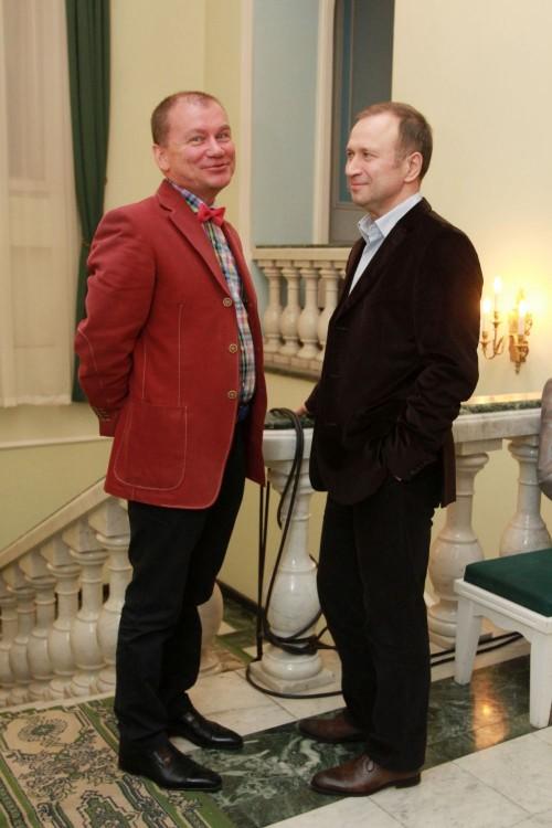 А вот компаньон г-на Волкова, депутат Омского горсовета Юрий Федотов был чуть скромнее. Он выбрал для похода на публику темно-коричневый бархатный костюм и светлую сорочку, что уже можно считать своеобразным подвигом, так как свободолюбивый г-н Федотов старательно избегает пиджаков даже на официальных заседаниях.