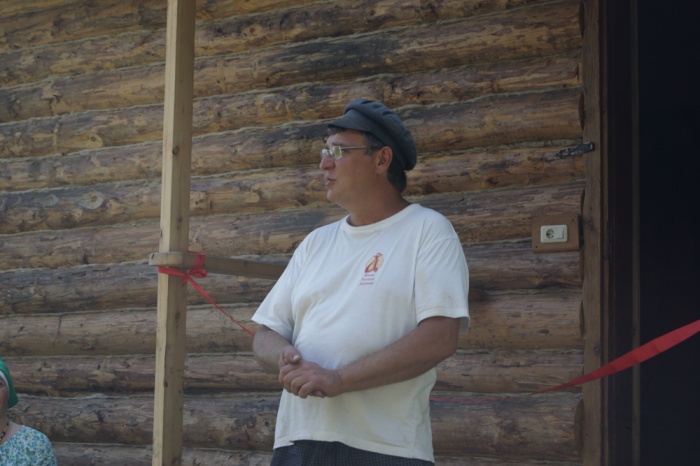 Перед торжественным перерезанием красной ленты с поздравительной речью выступил основатель деревни Алексей Никитенко.