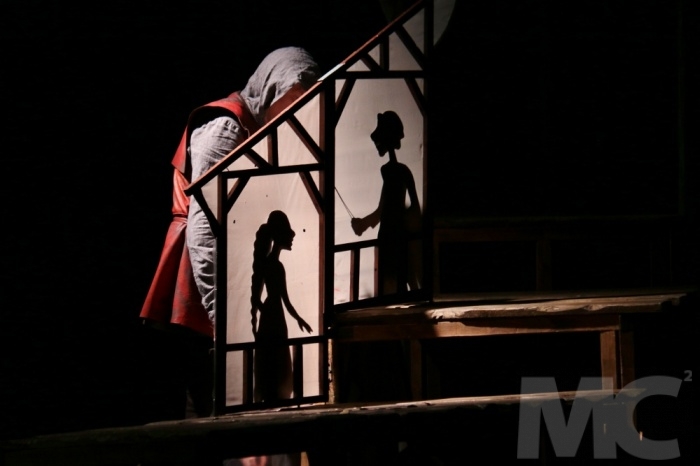 Сцена убийства Петером его жены решена в стиле театра теней.