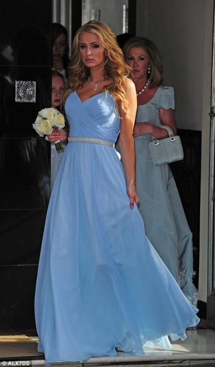К алтарю Ники вел ее отец – Ричард Хилтон, а главной подружкой невесты стала сестра Пэрис. Скандальная светская львица выбрала длинное струящееся платье нежного голубого оттенка.