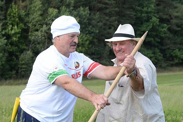 Накануне актер встретился с президентом республики Беларусь Александром Лукашенко. Для обеих сторон встреча не прошла даром: «Батька» вручил гостю косу и отправил Депардье косить траву.