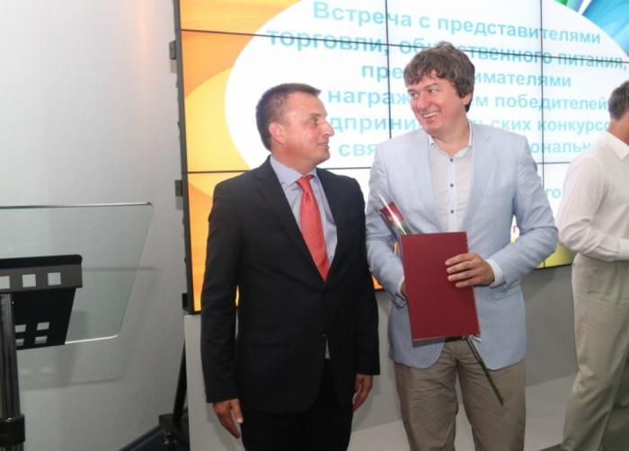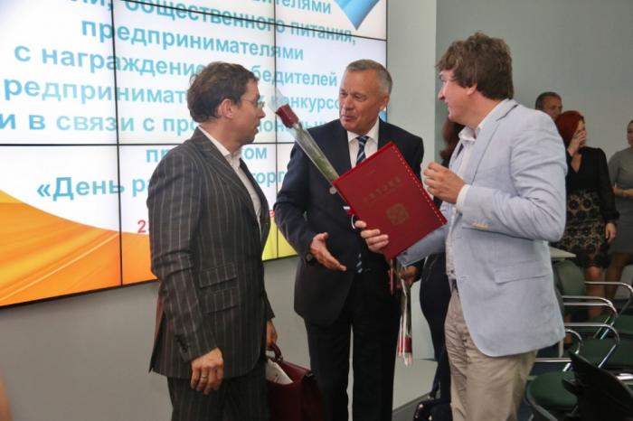 На минувшей вчера церемонии награждения лучших работников торговли отметился еще один известный омский бизнесмен Виктор Шкуренко, владелец одноименного торгового дома. Предпринимателю вручили благодарственное письмо от врио губернатора Омской области Виктора Назарова.