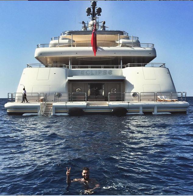 Тимур Юнусов, известный как рэп-исполнитель Тимати, отдыхает на считавшейся до последнего времени самой большой яхте Eclipse неподалеку от берегов Сан-Антонио — городка на побережье испанского острова Ибица. Как известно, роскошное судно принадлежит олигарху Роману Абрамовичу.