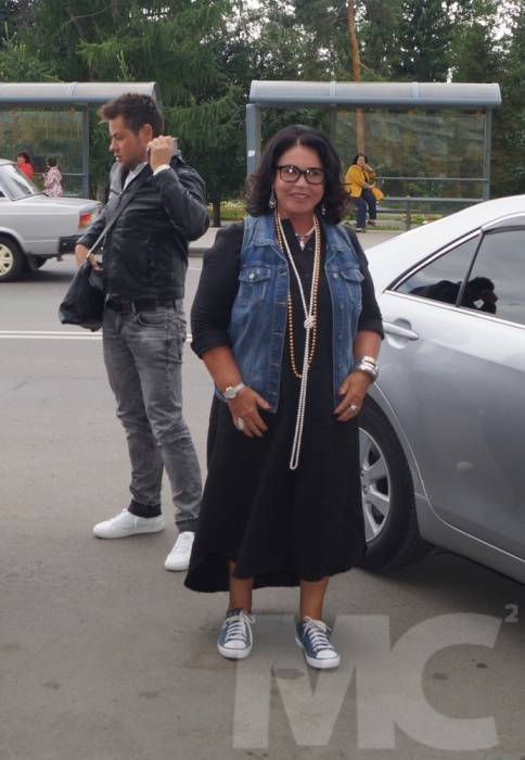 Бабкина решила обойтись без особой роскоши и в наряде — певица явно выглядела моложе своих лет — молодёжные кеды, модные сейчас лёгкие платья с накинутой жилеткой, прозванные в народе «хипстерскими» очки, бусы, пара колец и браслетов.