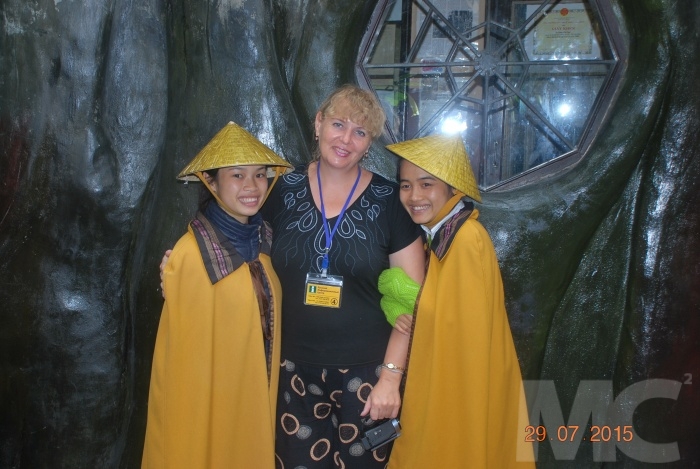 Бывший военный аэропорт Камрани встретил нас красными знамёнами (в стране социализм). Они полыхали на ветру, словно огонь в бане, в которую мы, по ощущениям попали — плюс 36 в тени при 90-процентной влажности. С жарой контрастировал внешний вид вьетнамок — укутанные в кофты, «намордники-респираторы», конические бамбуковые шляпы (нон) и даже в перчатки... Не потому, что замёрзли. Они прячутся от солнца. Идеал женской красоты тут — белая кожа,чёрные волосы и ярко-красные губы. Раньше ещё были популярны выкрашенные чёрным лаком зубы.