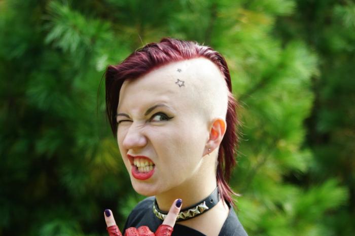 Не обошлось и без радикальных образов. Судя по внешнему виду, девушка - фанатка известной рок-исполнительницы Наргиз Закировой или еще чего «потяжелее».