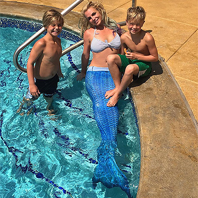 Несмотря на то, что дела в личной жизни у Бритни Спирс опять не ладятся, певица старается не падать духом. Теперь всю любовь она отдает своим сыновьям: 9-летнему Престону и 8-летнему Джейдену. Сейчас певица отдыхает в Лос-Анджелесе. Период концертов закончен, и все свободное время Бритни посвящает детям. Накануне она выложила в Инстаграм снимок, на котором позирует в образе русалки в окружении своих сынишек.