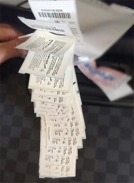 Отдельного поста удостоились багажные квитанции. Из декретного отпуска Топурия вернулась практически с тонной багажа.