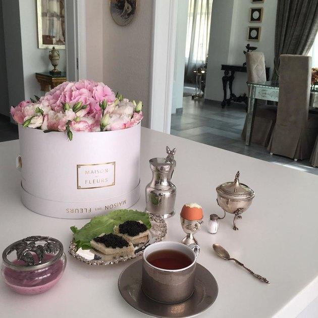 Продюсер Димы Билана, 40-летняя супруга Евгения Плющенко Яна Рудковская решила показать поклонникам свой завтрак. Снимок трапезы Рудковская выложила в Instagram. На фотографии в серебряной посуде отварное яйцо, йогурт, чай и бутерброды с черной икрой.
