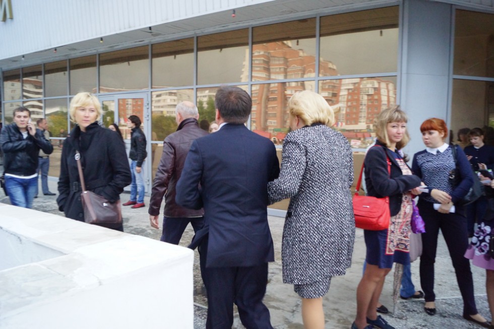 На первом вице-губернаторе был строгий темный костюм. Президент фонда «Дитя Вселенной» также выбралась в свет в костюме «в рубчик».