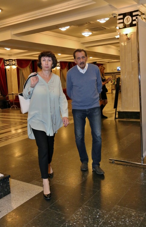 Супруги появились на пороге мюзик-холла буквально за пять минут до начала выступления и, оперативно скинув одежду, спешно заняли свои места в зале. Судя по всему, билеты им достались не в вип-секторе, а ближе к галерке по вполне бюджетному ценнику.