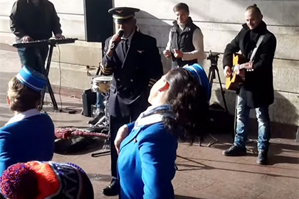 Известный грузинский актер и певец Вахтанг Кикабидзе был замечен поющим в переходе у станции метро «Площадь Льва Толстого», сообщает агентство «Українські Новини». Актер был одет в форму летчика и пел песню «Чито Грито» из популярного советского фильма «Мимино», а вокруг него танцевали три девушки в форме стюардесс.