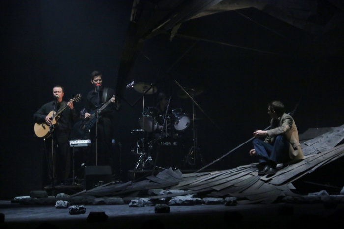 Первое совершенно понятно: спектакли в жанре литературно-музыкальной композиции не требуют обилия декораций и вообще могут играться без них. Впрочем, хозяева форума «Пятый театр» расстарались и сделали свои «Когда падают горы» по некогда весьма популярному Чингизу Айтматову визуально очень красивыми. Спасибо художнику Константину Соловьеву.
