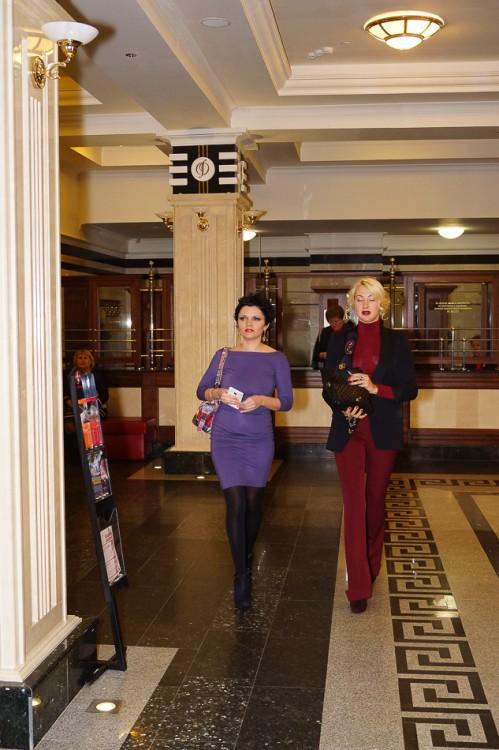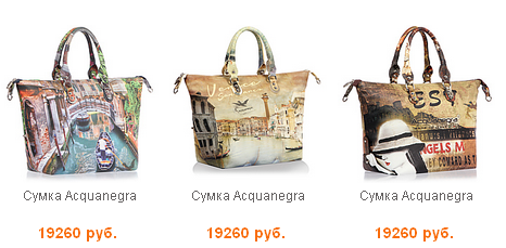 Стильная красочная сумочка с видами Венеции отлично смотрелась с ярко-фиолетовым платьем девушки, моментально привлекая к себе внимание посетительниц. Аксессуары с принтами известных городов являются особенностью данного бренда, средняя стоимость которых колеблется в районе 20 тысяч рублей.